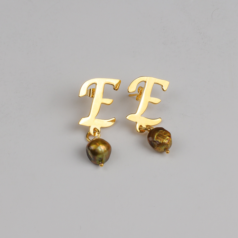 حلق أنيق وفاخر على شكل حرف "E"